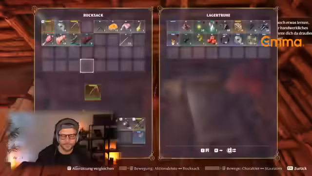 05:07:31Der Stream beginnt mit der Einrichtung der Taverne. Es wird zunächst über die deprimierende Atmosphäre gesprochen, die durch das helle Tutorial entsteht. Durch das Aufstellen von Kerzen wird eine gemütlichere Taverne-Stimmung geschaffen, obwohl die Kerzen mit der Zeit abbrennen. Es werden wichtige Gegenstände wie der Keller-Schlüssel und Fässer mit Bier gefunden. Auch die Anwesenheit von Ratten wird erwähnt, die später eine Rolle bei der Zubereitung von Rattenspießen spielen werden.
