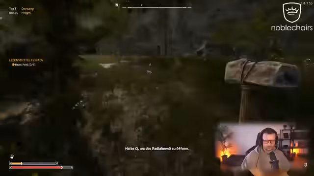 03:44:05Nach dem Gothic-Demo wechselt der Streamer zu "Viking Frontiers", einem Prolog-Spiel, das an "Medieval Dynasty" erinnert. Der Streamer startet das Spiel, stellt die deutsche Sprache ein und beginnt im Tutorialsmodus. Er beginnt am Strand, eine neue Heimat nach einer Schiffbruch-Katastrophe aufzubauen. Er sammelt anfänglich Ressourcen wie Spitzhacken, Kräuter und Fleisch, kocht Wasser über einem Feuer und stellt erste Werkzeuge her. Der Streamer vergleicht das Spiel positiv mit "Medieval Dynasty", ist aber noch unentschlossen, ob es die hohen Erwartungen erfüllt.