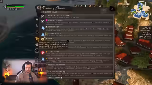 07:04:23Nach den misslungenen Kämpfen wechselt der Fokus auf Erfüllung von Kurier- und Eskort-Missionen. Der Spieler sammelt Truhen und Gegenstände, die im Anschluss an die Händler verkauft werden, um Gold zu verdienen. Das Inventar wird gemanagt, überflüssige Gegenstände entsorgt und der persönliche Tresor wird genutzt. Dies dient der Ressourcenakkumulation für den Kauf von Schiffsausrüstung und die Verbesserung der eigenen Flotte.