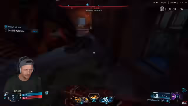 00:03:16Nach dem Einloggen als Ares werden verschiedene Optionen eingestellt. Die Audiosprache wird auf Deutsch und die Untertitel werden aktiviert. Die Steuerung wird angepasst, indem die Zielerfassung auf die Hälfte reduziert wird. Die Grafik wird auf das Maximum Badass eingestellt und Frame Generation aktiviert, was zu einer hohen FPS-Zahl führt. Die Steuerung fühlt sich für den Streamer leicht verzögert an, besonders im Menü, was er später im Spiel erneut bemerken wird. Der Streamer spielt auf 4K und streamt gleichzeitig.