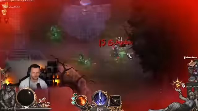 03:10:31Das Spiel baut ein Progressionssystem auf, bei dem der Spieler durch das Besiegen von Gegnern 'Thaler' erhält. Nach dem Tod wird der Spieler mit einigen dieser Ressourcen wiederbelebt, wobei seine Ausrüstung und aufgewertete Gegenstände verloren gehen. Gefundene Runen und Segen können aktiv eingesetzt und aufgewertet werden. Der Streamer findet und verwendet eine Rune, die zufällige Geschosse abfeuert, und einen Segen, der den Schaden um 20 % erhöht, was den Charakter deutlich stärker macht.