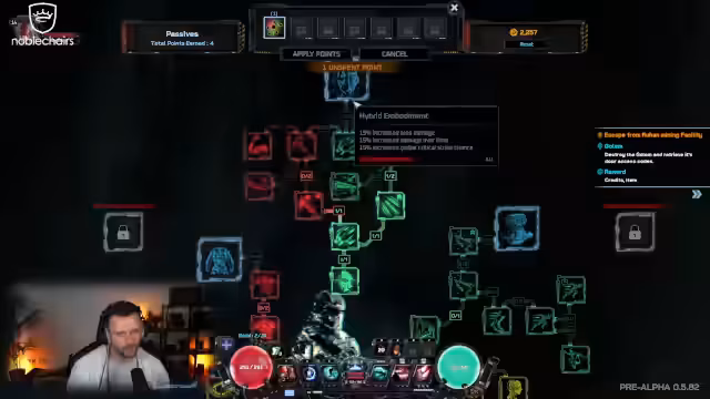 04:07:27Der Streamer vertieft sich in den Aufbau des Spiels und zeigt den Skill-Tree auf, der in verschiedene Zweige unterteilt ist. Man kann sowohl aktive Fähigkeiten als auch passive Skills freischalten und verbessern. Im Spiel können auch Implantate und Drohnen eingesetzt werden, was dem Cyberpunk-Setting entspricht. Der Streamer ist beeindruckt von der Tiefe des Skill-Systems und dem Gefühl, stetig stärker zu werden, auch wenn er die Mechanik der Passive Points zunächst nicht ganz versteht.