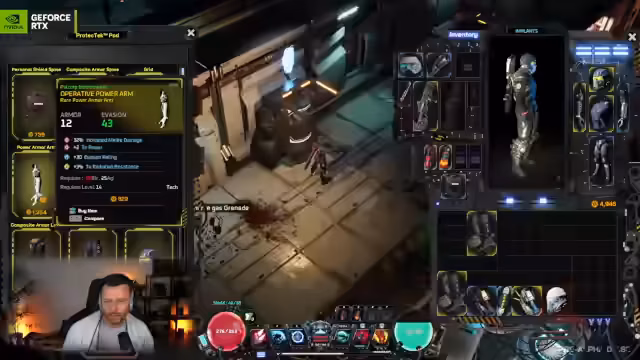 04:01:52Als zweites Spiel wird 'Carbon' vorgestellt, ein Cyberpunk-ARPG, das ebenfalls über eine Demo auf Steam verfügt. Der Streamer führt in die Steuerung mit WASD und der Maus ein und erkundet eine dystopische Welt. Es gibt ein Inventarsystem, verschiedene Waffen wie Schrotflinten und Railguns, sowie ein Färbungssystem für Ausrüstungsteile. Der Charakter kann durch das Sammeln von Gegenständen und das Besiegen von Feinden auf Level steigen und erlangt dabei Fähigkeitspunkte.