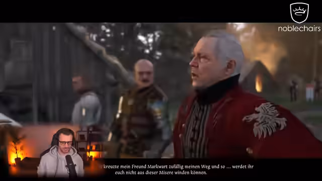 03:37:55Der Protagonist erfährt, dass Herr von Bergo Herrn Hans Karpon von Pürkstein als Geisel hält und dass Jobsts Verbündeter Johann von Lichtenstein gewarnt werden muss. Er bedankt sich für den herzlichen Empfang und wird in einem kleinen Haus im Hof neben der Mauer untergebracht. Der Streamer erklärt, wie man Warhorse-Gegenstände erhält und wo man sie finden kann. Er zeigt Goodwin's Ring und seine guten Stats. Der Protagonist erkundet die Karte und entdeckt andere Regionen, darunter Suchdoll mit einem Wassergraben und einer Kapelle. Er erfährt, dass er für 200 Thaler wieder zurückreisen kann. Der Streamer zeigt die Quest und betont, dass die Raubvogel-Quest automatisch ausgeblendet wird. Der Protagonist trifft auf von Troski und Knochenteufel und erfährt, dass sie die Burg eingenommen haben. Er erfährt von von Bergos Verrat und seiner Zusammenarbeit mit von Aulitz und der Prager Miliz. Siegesmund verliert die Geduld und will den Waffenstillstand brechen. Der Protagonist wird gewarnt, dass Siegesmund die Geduld verliert und seine Gefolgsleute in Kuttenberg versammelt. Er soll die Festung sichern, Vorräte einlagern und Truppen ausbilden. Der Protagonist erfährt, dass Markgraf Jobst unruhig wirkt und dass er sich so wenig wie möglich mit Hinek begegnen soll. Knochenteufel hat in der Gegend drei von Siegesmunds Karawanen und einen Trupp von Kumanen überfallen, was Jobst stört.