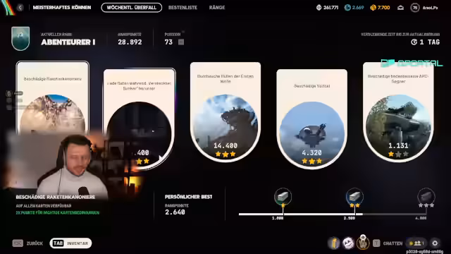 04:25:57Nach einer intensiven Phase, in der die Spieler erfolgreich extrahiert haben, werden die erbeuteten Gegenstände und Punkte zusammengefasst. Die Gruppe hat wertvolle Beute gesammelt, darunter eine Blaupause, ein erweitertes Magazin und ein leichtes Magazin 3, einen Schalldämpfer und einen verlängerten Lauf. Es wird diskutiert, dass die Schusswechsel hauptsächlich auf Camper im Tower stattfanden und die Frage aufkommt, ob die Gegner im Tower gestorben sind oder auf dem Weg. Der Streamer hat 73 Holding-Punkte, während ein anderer Spieler auf Abstieg 85 ist, obwohl er ebenfalls 28.000 Punkte hat. Es wird festgestellt, dass die Lobby des Streamers im Vergleich zu anderen Spielern mit höheren Punktzahlen als angenehm empfunden wird, was auf eine 'Glückslobby' hindeutet.