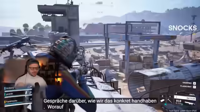 04:11:02Die Spieler befinden sich in einer kritischen Phase des Bunker-Events, umgeben von anderen Teams, die alle bewaffnet sind und nicht kommunizieren. Die Anspannung ist extrem hoch, und die Spieler müssen zusammenbleiben, um zu überleben. Der Download der Daten ist im Gange, und es ist entscheidend, diesen zu schützen. Die Spieler trauen niemandem und bleiben wachsam, da jederzeit eine Schockmine oder Granate die Situation eskalieren lassen könnte. Es kommen weitere Truppen in den Bunker, was die Lage noch unübersichtlicher macht. Die Angst vor einem plötzlichen Angriff ist allgegenwärtig. Trotz der Gefahr müssen die Spieler weiter vorrücken und die nächsten Tore öffnen, um das Event abzuschließen. Die Nerven liegen blank, und jede Bewegung wird mit größter Vorsicht ausgeführt. Die Spieler sind auf ihr Team angewiesen, um sich gegenseitig zu schützen und zu heilen, während sie versuchen, die Daten zu sichern und dem Bunker zu entkommen. Die Situation wird als unterhaltsam für Zuschauer, aber als extrem nervenaufreibend für die Spieler beschrieben.