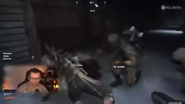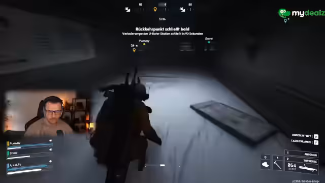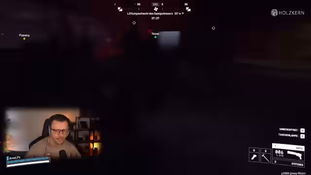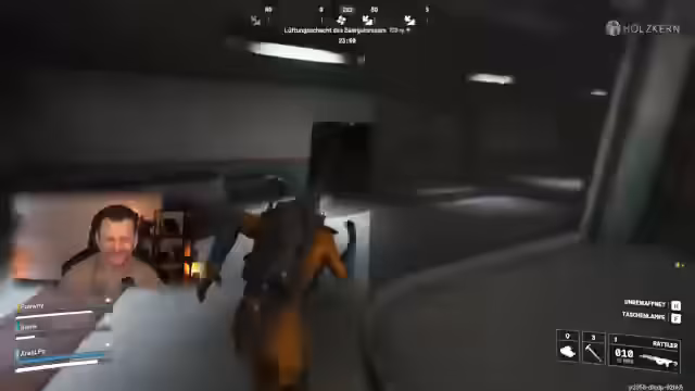 04:07:04Die Gruppe plant eine „Epikrunde“ und diskutiert die Waffenwahl. Ein Spieler schlägt vor, eine „Bobcat“ mit komplettem Modding zu verwenden, während ein anderer die „Anvil mit Stitcher“ bevorzugt. Es werden Suchgranaten entdeckt, die Gegner markieren können. Der Türblocker wird als beeindruckend und schnell reagierend gelobt, und die Idee, drei Türblocker mitzunehmen, wird als gut befunden. Ein Spieler erwähnt, dass seine Figur im Dezember zurückgesetzt wird. Die Gruppe entscheidet sich, mit besserem Loot in die nächste Runde zu gehen und stellt einige Gegenstände her. Defibrillatoren werden mitgenommen, und die Frage, ob Seilrutschen oder Minen nützlicher sind, wird zugunsten der Minen entschieden. Ein Spieler plant, eine „Deadline“ mitzunehmen. Das Spiel wird als „Spiel des Jahres“ für den Bereich Multiplayer bezeichnet und mit Battlefield verglichen. Es wird über Waffenhandling und Feedback gesprochen. Die Möglichkeit, den Charakter zurückzusetzen, wird erwähnt. Die Gruppe befindet sich in einer Hauptlobby, wo ein Roboter vermutet wird. Die Umgebung ist sehr dunkel, und die Spieler fragen sich, warum die Lichter nicht an sind. Sie finden einen Überwachungsschlüssel und entdecken ein Rohrlicht, das sie nicht kennen. Schüsse von rechts deuten auf weitere Gegner hin, und die Gruppe versteckt sich.