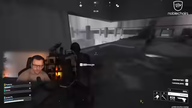 02:17:15Die Spieler finden sich in einem labyrinthartigen Bereich wieder und suchen nach der Cargo-Lady. Es kommt zu intensiven Gefechten, bei denen Schrotflintenmunition eine wichtige Rolle spielt. Die Umgebung ist verwinkelt und es fällt den Spielern schwer, sich zu orientieren, da sie immer wieder in Kreisen laufen. Trotz der Schwierigkeiten und der scheinbaren Überzahl der Gegner, die von oben und unten angreifen, versuchen die Spieler, sich gegenseitig zu unterstützen und die Situation zu meistern. Die Kommunikation ist dabei entscheidend, um die Positionen der Feinde zu verfolgen und sich effektiv zu verteidigen. Die Runde ist geprägt von schnellen Entscheidungen und dem ständigen Wechsel zwischen Angriff und Verteidigung, was die Spannung hochhält.