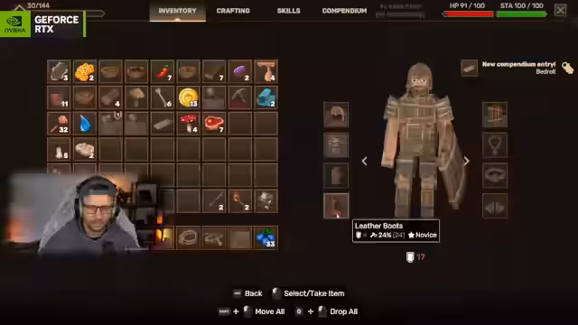 02:01:51Nach dem Ball-RPG stellt der Streamer das Craft-Survival-Abenteuer 'Everwind' vor. Die Demo, die im Xbox Game Pass enthalten ist, macht durch ihre Minecraft-ähnliche Grafik und Animationen einen sehr positiven Eindruck. Der Spieler erkundet eine Insel, sammelt Ressourcen wie Holz und Stein, craftet Werkzeuge und Waffen und entdeckt bereits in der erste Dungeon-ähnliche Bereiche. Das Spiel bietet einen Kompass, um Points of Interest zu scannen, und bereits sehr früh die Fähigkeit, ein eigenes Flugzeug zu bauen und damit die Inseln zu erkunden.