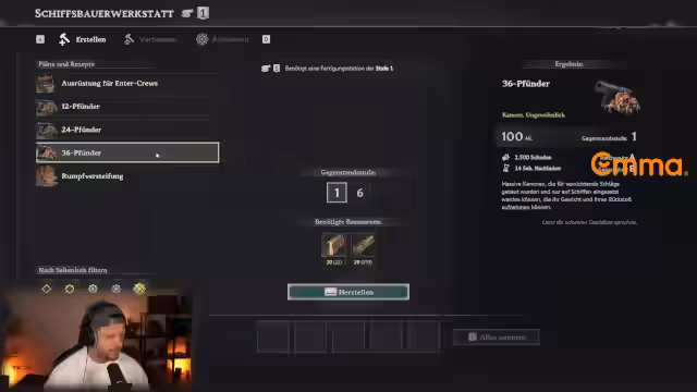 05:29:02Der Streamer sammelt Ressourcen für Schiffsausrüstungen, darunter blaue Rapiere und Goldbarren zur Herstellung lila Rüstungen. Er erwähnt die Angel mit 1000 Haken und diskutiert die verschiedenen Schiffstypen wie Fregatten und Galeonen. Besonderes Augenmerk liegt auf dem Upgrade von Schiffen, wobei er zwischen schnelleren und stärkeren Varianten abwägt und die Vorteile verschiedener Kanonengrößen erläutert. Er stellt fest, dass manche Schiffe wie die Blackbeard Catch schnellere Nachladezeiten haben, aber weniger HP besitzen.