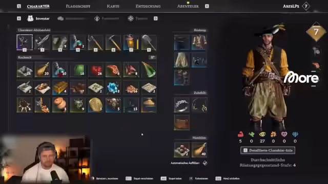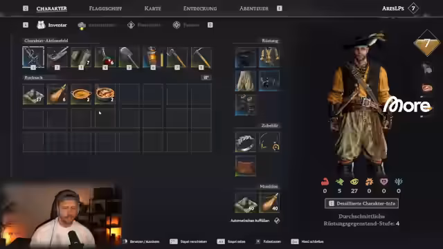 05:39:12Der Streamer erläutert verschiedene Gameplay-Mechaniken wie den Umgang mit Munitionsarten und das Übernehmen von Spielständen. Er betont die Wichtigkeit des Upgrades von Ausrüstung, Kleidung und Schiffen, da dies den Fortschritt im Spiel erheblich beeinflusst. Er erwähnt, dass man quest-Fortschritte auch in der Gruppe teilen kann, solange dies aktiviert ist, und beschreibt, wie man sich Discord zum Treffen in bestimmten Spielbereichen koordinieren kann. Er gibt auch Tipps zur Vorbereitung auf Kämpfe mit Bossen.