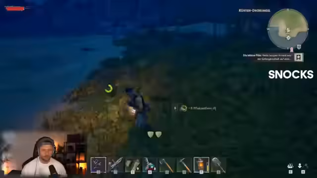 00:07:32Der Stream beginnt mit technischen Problemen, die Stimme des Streamers ist zunächst nicht vorhanden. Nach der Begrüßung der Zuschauer berichtet er über seine Fortschritte im Spiel, insbesondere über den Ausbau seines Schiffes und das Erreichen des zweiten Biom-Gebiets. Er erwähnt, dass das Schiff wirklich ausgebaut werden sollte, da es den gesamten Spielprozess erleichtert. Der Streamer beschäftigt sich zunächst mit ressourcenintensiven Aufgaben wie Holzhacken, Erzabbau und Sammeln von Pflanzenfasern. Er kritisiert insbesondere die aggressiven Wölfe im Spiel, die sein Vorankommen erschweren, und vergleicht sie mit den noch gefährlicheren Ziegenböcken.