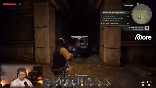 04:04:22Der Streamer erkundet die Spielwelt sammelt Ressourcen und kämpft gegen verschiedene Gegner. Er stellt fest dass der Server aktualisiert wurde und sucht nach benötigten Materialien wie Nüssen Seilen und Leder. Er erwähnt das Spiel Entschrouded und vergleicht das Bausystem mit anderen Spielen wie Conan Exiles Soulmask und Ark Survival Evolved wobei er feststellt dass es simpler ist aber voxelbasiertes Bauen nicht unterstützt. Der Streamer konzentriert sich auf das Sammeln von Ressourcen und das Freischalten neuer Inhalte.