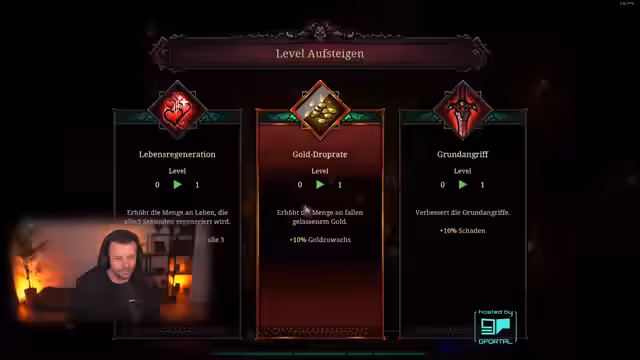 04:30:48Der Höhepunkt der Runde ist der Erhalt eines legendären Items in Form von goldenen Handschuhen mit hohem Crit-Schaden und Projektilanzahl. Gleichzeitig wird ein Zwischenboss bekämpft, der für viel Gold sorgt. Trotz eines gefährlichen Moments, in dem das Charakterleben drastisch sinkt, gelingt es, den Rundenabschluss zu schaffen und die Fortschritte zu sichern.
