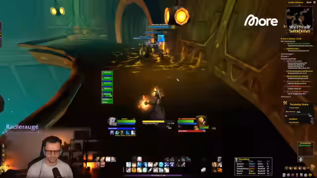 02:39:51Innerhalb des Dungeons analysiert der Streamer seine eigenen Spielweise und Skillungen. Er stellt fest, dass sein Priest fürs Tanken umskillen musste, um die Weihe-Skillung zu nutzen, was ihn ein Goldstück kostete. Die Gruppe findet einen guten Rhythmus, indem sie langsam und bedacht die Gegnerpullen, um aggro-technische Probleme zu vermeiden. Es wird über den Mana-Verbrauch diskutiert und der Streamer erklärt, dass er niedrigere Ränge seiner Heilzauber nutzt, um Mana zu sparen und nur bei Bedarf auf stärkere Heilungen zurückgreift, besonders da er primär durch Schadenszauber, die ebenfalls Bedrohung aufbauen, aggro zieht.