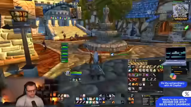 01:29:13Der Streamer interagiert intensiv mit anderen Spielern in der Gruppe, die sich um ihn herum befinden. Er bietet Gegenstände wie Eltränke, Armschienen und Gürtel an und tauscht diese mit anderen Spielern aus. Er verbringt viel Zeit damit, den Inventar der anderen zu prüfen und sie bei der Auswahl von Ausrüstung zu unterstützen. Die Stimmung in der Gruppe ist gutgelaunt und kooperativ.