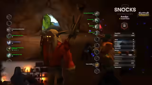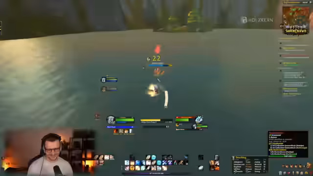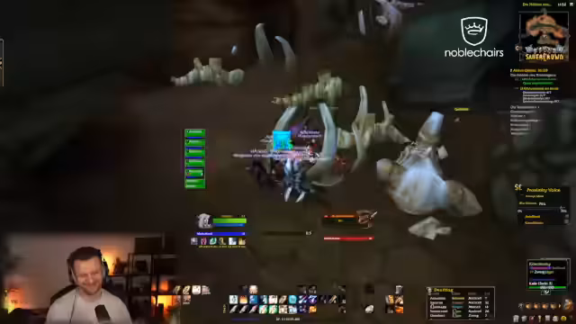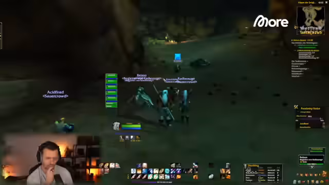 04:58:09Es wird eine Liste von Addons geteilt, die für das Spiel hilfreich sind. Die Gruppe ist nun im HDW (Höhlen des Wehens) unterwegs und konzentriert sich darauf, die Bosses zu besiegen. Es werden spezifische Boss-Mechaniken besprochen, wie z.B. ein Boss, der hohe Schadenswerte hat, und der Tipp, auf maximale Distanz zu bleiben, um von Druiden-Sleep-Effekten verschont zu bleiben. Nach dem Dungeon sollen weitere Gruppen folgen.