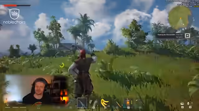 04:58:18Der Streamer zeigt sich beeindruckt von der grafischen Gestaltung, insbesondere vom Rendering des Holzfällens und von der visuellen Qualität der Assets. Er erwähnt, dass Leuchtobjekte eingestellt werden können, was am Anfang überbelichtet war. Auch die sichtbare Crew auf Schiffen wird als zukünftiges Feature angedeutet. Gleichzeitig kritisiert er eine technische Unschärfe bei der Zielung, bei der sich der Charakter nicht korrekt in Blockerichtung ausrichtet, was als störend empfunden wird.