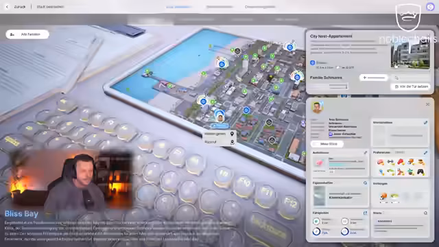 03:06:25Es wird das Haus verlassen, um die Stadt zu erkunden. Es ist bereits dunkel und es wird überlegt, wohin man fahren soll. Der Vergnügungspark soll bei Nacht erkundet werden. Viele Geschäfte haben jedoch geschlossen. Einige Automaten können noch genutzt werden. Es wird versucht, die Eule am Gameautomaten zu gewinnen. Ein Stofftieradler wird im Inventar gefunden. Es wird ein Hotdog gegessen und die Toilette im Vergnügungspark benutzt. Das Spiel wird als etwas unheimlich empfunden, da man die Figur selbst steuern kann. Es wird überlegt, wie das Spiel nach dem Early Access aussehen wird. Es wird ein Mitternachtssnack eingenommen und schlafen gegangen. Die Grafikeinstellungen werden auf extrem hoch gestellt. Es wird versucht, die Bevölkerungsdichte einzustellen. Es werden Tiere eingestellt und umgefärbt. Am nächsten Tag wird nicht gearbeitet, sondern geputzt und Sport gemacht. Es wird festgestellt, dass das Spiel in den Details staubig ist. Eine Besucherin wird freundlich begrüßt. Es wird versucht, einen Termin zum Putzen in den Terminkalender einzutragen.