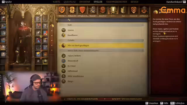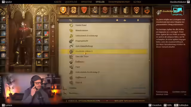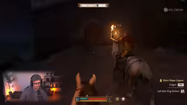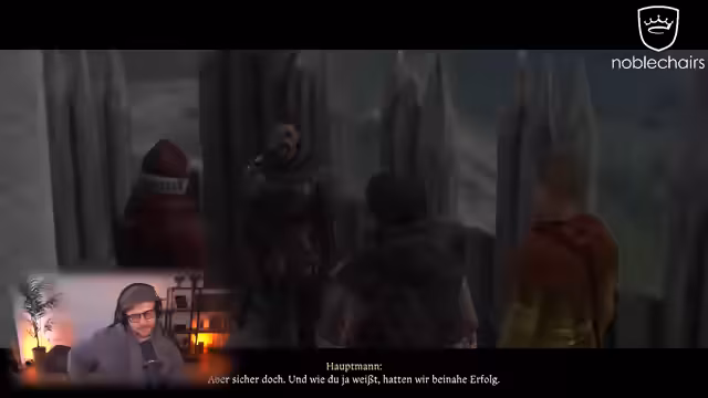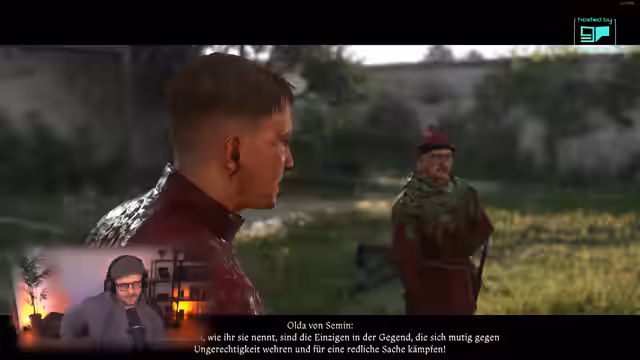 06:53:33Der Streamer wechselt den spielbaren Charakter, nachdem eine Szene abgespielt wurde. Die Figur, die man steuert, ist Goodwin, ein Bote und Schwertkämpfer. Die Story dreht sich um die Suche nach zwei Adligen, Herrn Kapern von Pirkstein und Heinrich von Skalitz, die vermisst werden. Goodwin trifft auf Erik, den Kommandanten der Festung Talmberg, der von der Gefangennahme der Adligen berichtet, aber keine Details nennt.