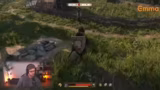 06:17:19Der Streamer zieht mit Hans und Carpon in die Schlacht. Der Angriff beginnt, und es kommt zu intensiven Kämpfen mit den Banditen. Der Streamer ist von der Action und der Grafik der Schlacht sichtlich beeindruckt und kommentiert die blutigen Kämpfe und die besondere Atmosphäre.
