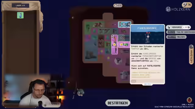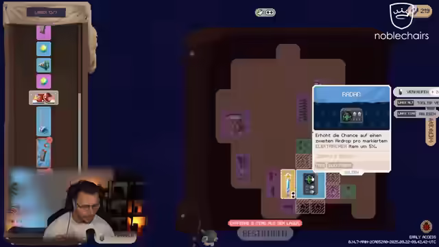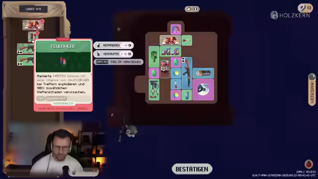 01:48:01Der Streamer analysiert, welche Items er aufwerten soll, wobei das Jojo und der Magnet zur Debatte stehen. Der Magnet, der die Sammelreichweite erhöht, wird als besonders nützlich erachtet, um Steine aufzusammeln. Es wird festgestellt, dass das Spiel aufgrund der vielen Effekte und Explosionen unübersichtlich wird und der Sound angepasst werden muss. Es wird ein Feld benötigt, um Items richtig zu platzieren und ihre Wirkung zu maximieren. Der Magnet wird in Kombination mit der Pumpe als besonders effektiv angesehen. Es wird überlegt, ob sich eine weitere Pumpe im Lager befindet, was jedoch verneint wird. Stattdessen werden Drums erwähnt, die für zusätzlichen Spaß sorgen könnten. Der Streamer stellt fest, dass er sich aufgrund der vielen Effekte kaum noch sehen kann. Es werden Socken gefunden, die Schaden und Bewegungsgeschwindigkeit erhöhen, aber viel Platz wegnehmen. Es wird überlegt, ob es sich lohnt, die Socken zu nehmen, obwohl sie in einer Reihe liegen und möglicherweise nicht optimal getriggert werden. Es wird mit der Anordnung der Items experimentiert, um die bestmögliche Trigger-Kombination zu finden. Der blaue Trigger wird als weniger effektiv angesehen und Anpassungen vorgenommen. Es wird festgestellt, dass die blaue Pumpe nicht mehr beide Items triggert und entfernt werden muss. Der Streamer plant, die Pumpe aufzuwerten und Platz für die Drums zu schaffen. Es werden verschiedene Wurfgegenstände wie Feuerwerk und Nates gefunden und deren Nutzen diskutiert. Die Trommel wird als aktivierend für Angriffs- und Nachladegeschwindigkeit angesehen. Es wird festgestellt, dass die Runde sehr angenehm verläuft und kaum Schaden entsteht.