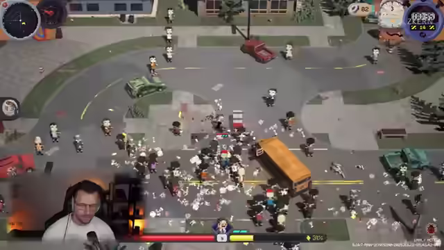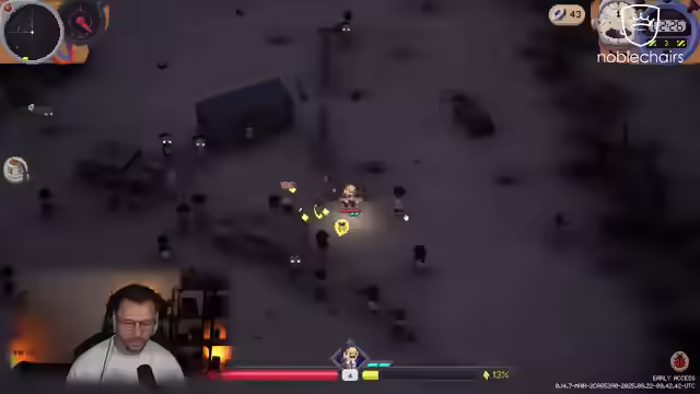 00:39:07Der Streamer experimentiert mit einer Schrotflinte und der Anlockwirkung der Cola, um Gegner anzuziehen. Er erkundet die Map, die er als klein empfindet und nutzt Rollschuhe, um schneller voranzukommen. Er spielt den Chart 'Erst knackt's, dann knallt's', den Skin von Hanno im Sparkassenanzug. Er farmt Ressourcen und levelt auf. Er kombiniert verschiedene Items, wie die Batterie für Kettenblitze, und deaktiviert kurzzeitig Erweiterungen, um sich einzuspielen. Er probiert verschiedene Waffen und Gadgets aus und testet, ob die Effekte richtig getriggert werden. Es wird überlegt, ob die Schuhe mit der Cola interagieren und wie man die Items am besten kombiniert, um maximale Effekte zu erzielen. Er experimentiert mit verschiedenen Builds und Taktiken, wobei er die Herausforderung genießt, selbst herauszufinden, welche Kombinationen am effektivsten sind. Er ignoriert Tipps und Tricks von anderen, um die Immersion nicht zu verlieren.