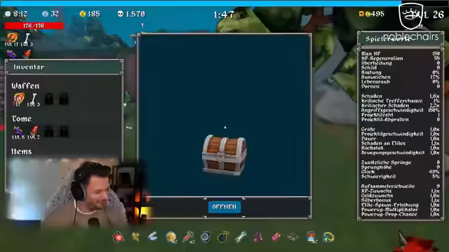 06:15:27Es wird die Spielstrategie angepasst, wobei der Fokus auf Range-Angriffe und Mana-Management gelegt wird. Es wird versucht, Ressourcen wie Silber zu finden, um den Charakter weiter zu verbessern. Es wird kurz auf das Spiel 'Throne of Liberty' eingegangen und dessen Entwicklung seit dem Release. Es wird ein anderes Spiel namens 'Megabonk' vorgestellt, das als Suchtgame beschrieben wird. Es werden verschiedene Aspekte von 'Megabonk' erläutert, darunter das Aufwerten der Figur und das Finden von Türmen. Es wird betont, dass es bei diesem Spiel nicht auf die Grafik ankommt, sondern auf das Gameplay. Es werden weitere Spiele wie 'Deep Rock Galactic Survivor' und 'Clover Pit' empfohlen. Es wird versucht, Elite-Gegner zu besiegen und den Boss zu finden, wobei die Minimap zur Orientierung genutzt wird. Die Freude am Entdecken neuer Spiele und das Teilen von Empfehlungen stehen im Vordergrund.