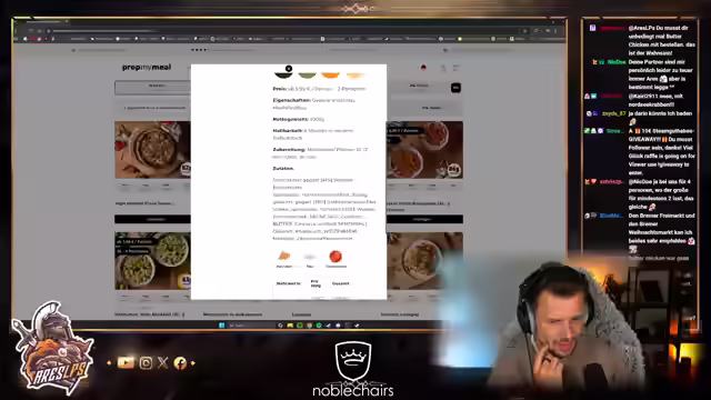 07:56:28Es wird ein Rabatt von 5% auf PrepMyMeal erwähnt, wobei Mac & Cheese als persönlicher Favorit genannt wird. Es wird darauf hingewiesen, dass bei der Bestellung regelmäßige Lieferungen deaktiviert werden sollten, besonders beim ersten Ausprobieren. Die Zuschauer werden nach ihren PrepMyMeal-Favoriten gefragt. Chili con Carne wird als Favorit genannt, wobei der Streamer betont, keine extreme Schärfe zu bevorzugen. Es werden verschiedene Gerichte wie Proteinpasta Bolognese, High-Protein-Pizza-Tono und Mac-and-Cheese-Hähnchen genannt. Butter Chicken wird als mega hervorgehoben. Es wird empfohlen, bei der Bestellung über PrepMyMeal den Code "Ares" zu verwenden. Der Streamer äußert den Wunsch, wieder mehr Kartoffelgerichte in seine Ernährung einzubauen und erwähnt, dass er momentan die Proteinpasta Bolognese bevorzugt, die lange sättigt.