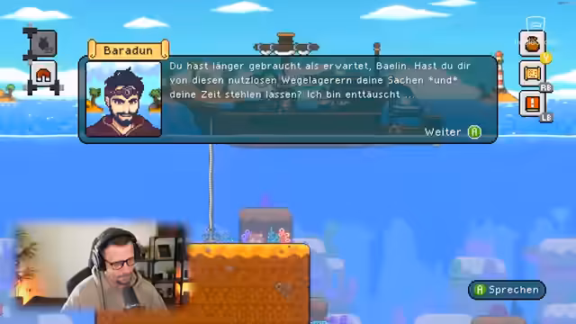 01:16:22Der Streamer spielt RPG-Fishing-Spiel und stellt Charaktere wie Greg den Knoblauchbauern, Balin, Butter den Schmied und Hochzauberer Baradun vor. Diese NPCs geben Quests und bauen die Spielwelt Honeywood auf. Der Spieler mit seiner Rolle als Fischer Balin interagiert mit ihnen und erlebt eine Mischung aus Angelsimulation und RPG-Elementen. Die Welt Ezerim Azerim wird durch dialogreiche Quests und humorvolle Gespräche lebendig gestaltet.