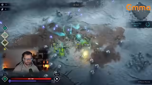 01:31:30Es wird erwähnt, dass es zu viele Spiele und zu wenig Zeit gibt. Drops werden gesammelt und eingelöst, darunter eine Axt für den Berserker. Es wird nach der Skin-Auswahl gesucht. Es gibt verschiedene Klassen im Spiel, darunter Revenant, Flammenschwester und Hüter. Neu hinzugekommen ist der Sippenmörder. Die Grafik des Spiels wird gelobt. Es wird auf normalem Schwierigkeitsgrad in Muspelheim gespielt. Das Event gestern war anstrengend, aber das Nichtwissen und Herumstöbern wurde als positiv empfunden. Das Spiel The Alters wurde bereits getwitcht, aber nicht durchgespielt. Technische Probleme während des Events wurden durch den Wechsel zu GeForce Now behoben. Es wird überlegt, YouTube-Archive zu erstellen. Der Übergang vom alten zum neuen PC ist abgeschlossen. Ein Windows-Update hatte Partitionen zerschossen, aber jetzt läuft alles wieder. Clips werden auf YouTube und Instagram hochgeladen. Das Spiel ist auf Steam im Angebot. Es wird ein Katapult zerstört und Gold gefarmt. Die Zuschauer können über Twitch-Integration abstimmen und so das Spiel beeinflussen. Es wird überlegt, den Delay für die Abstimmung zu erhöhen. Die Zuschauer wählen Freya und die Scherben. Die Twitch-Integration wird als positiv empfunden, obwohl sie den Spielfluss stören kann. Die Abstimmungszeit wird reduziert, um den Spielfluss zu verbessern. Die Zuschauer wählen Thor und den Blitzschlag. Die Twitch-Integration wird als Hammer bezeichnet. Die Zuschauer spielen das Spiel und wählen die Fähigkeiten aus. Die Mindestanzahl an Stimmen wird reduziert, um die Abstimmung zu beschleunigen. Es wird überlegt, die Twitch-Integration im Wechsel zu nutzen. Drops in der Waffenauswahl werden erwähnt. Das Spiel wird als entschleunigt wahrgenommen, was es Zuschauern ermöglicht, mitzuwirken und es zu verstehen.