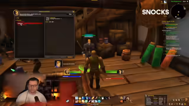 00:22:08Der Streamer nimmt sich eine Reihe von Quests in Westfall vor, die das Beschaffen verschiedener Alkoholischer Getränke für die Wache Parker beinhalten. Die Durchführung der Quest führt ihn durch die Gegend und er sammelt nebenbei diverse Gegenstände. Er nutzt die Zeit, um auch etwas in der Berufsleiste zu schmieden, und stellt fest, dass die Tasche voll ist und Inventarmanagement notwendig wird.