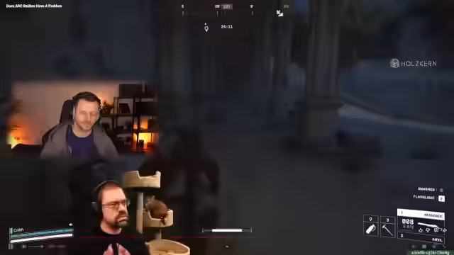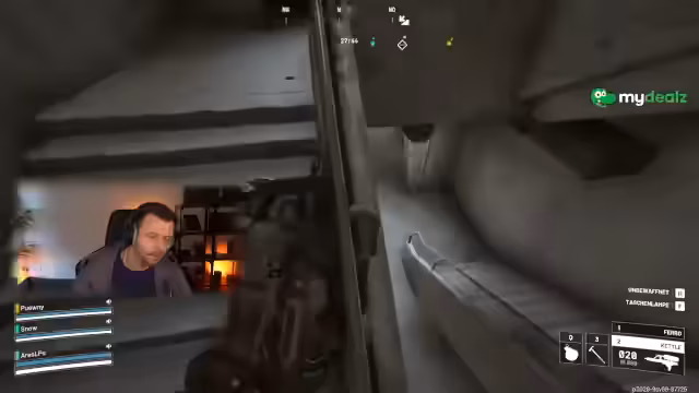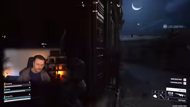 03:17:39Nach einer kurzen Wartezeit aufgrund von Matchmaking-Problemen, die sich in verzögerten Schüssen äußern, beginnt eine neue Runde. Die Spieler erhalten unterschiedliche Startwaffen, darunter eine Ferro und eine Rattler, was zu Diskussionen über die Effektivität der Ausrüstung führt. Es wird festgestellt, dass das Team oben in der Lobby startet, was eine taktische Entscheidung für den Einstieg in bestimmte Bereiche mit sich bringt. Die Notwendigkeit, leichte Munition und Stroh bereitzuhalten, wird betont, da gegnerische Spieler schnell vorrücken. Die Streamer geraten schnell unter Beschuss von oben und von beiden Seiten, was eine koordinierte Verteidigung erschwert und zum Rückzug zwingt. Die Präsenz von Wespen und Hornissen erschwert die Situation zusätzlich, da diese Drohnen die Spieler ablenken und verwundbar machen.