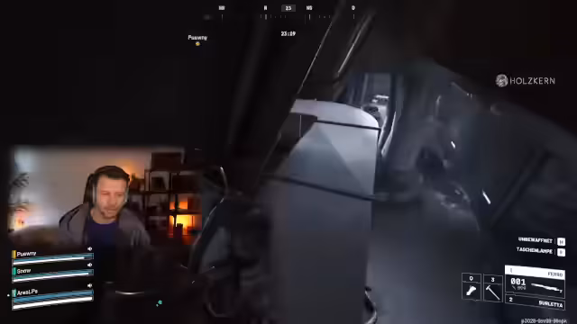 05:14:37Die Gruppe entscheidet sich, die Sicherheitskontrolle zu erkunden, einen roten Bereich, der als heißes Pflaster gilt. Sie sind bereit für intensive Gefechte und suchen nach Boxen und Loot. Während der Erkundung kommt es zu kleinen Rucklern im Spiel, die auf Serverprobleme zurückgeführt werden. Die Gruppe entdeckt einen neuen, verwinkelten Gang, den sie zuvor noch nie betreten haben. Dies führt zu einer spannenden Erkundungsphase, bei der sie versuchen, den Weg zu finden und gleichzeitig auf Gegner zu achten. Es wird diskutiert, ob sich in diesem Bereich Blueprints befinden könnten. Plötzlich hören sie Bewegungen und Schussgeräusche, was darauf hindeutet, dass sich Gegner in der Nähe befinden. Die Gruppe bereitet sich auf einen weiteren Kampf vor, während sie versucht, die Umgebung zu nutzen, um die Oberhand zu gewinnen. Die Mischung aus Erkundung und Kampf macht diese Phase besonders aufregend und unvorhersehbar.