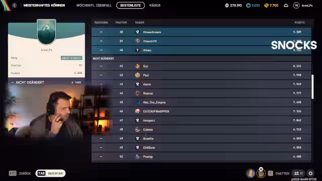 06:30:14Es wird angekündigt, dass morgen früh voraussichtlich kein Stream stattfinden wird, da der Streamer einen Tattoo-Termin hat. Es wird jedoch versucht, die Zeit umzustrukturieren, um zumindest ein paar Stunden streamen zu können. Eine Ankündigung auf Instagram bezüglich der Stream-Zeiten wird in Aussicht gestellt. Die Spieler bedanken sich für die 'Triple Rounds' und die unterhaltsame Zeit. Die Community wird ebenfalls verabschiedet und ermutigt, die neuen 'Trials' auszuprobieren, die als 'geiler' und 'umsetzbarer' als zuvor empfunden werden. Die Spieler sind im 'Adventurer 1' Rang geblieben und freuen sich auf die kommenden Herausforderungen und das Update.