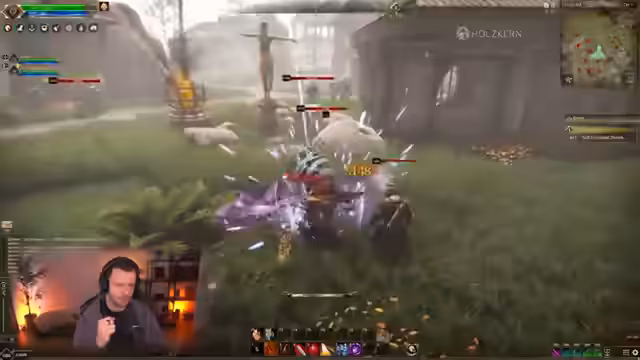 06:13:49Die grafische Gestaltung von Kinfall, insbesondere die Vegetation, Leuchteffekte und Schattierungen, laden dazu ein, die Spielwelt zu erkunden. Die roten Punkte auf der Karte markieren Gegner, und man kann den Blickwinkel einsehen. Die Quests sind rechts angepinnt, während links der Chat platziert ist. Im Menü kann man Skillpunkte verteilen und Waffen wie das Zwei-Hand-Schwert auswählen, wobei verschiedene Waffen zur Verfügung stehen, darunter Speer, Dual Axe, Dual Dagger, Warhammer, Bogen, Armbrust, Stab und Lebensstab. Die ersten Eindrücke der Waffen sind in Ordnung, wobei der Warhammer sich etwas schwerfällig anfühlt. Das Spiel verspricht viel Content, aber es wird dauern, bis man alles erreicht hat. Aufgrund von Serverproblemen gestaltet sich das Spielen etwas schwierig. Im Menü findet man Optionen wie Charakter, Inventar, Skills, Clan, Pets, Mounds, Ships, Least House, Least Farm, Altar, Builds, Workers, Quest, Card Deck, Central Market, World Map und Store. Es gibt auch Castle Wars, Arena Battles und Battle of Valhalla. Eine Wiki mit Klassen und Spezialisierungen ist verfügbar.