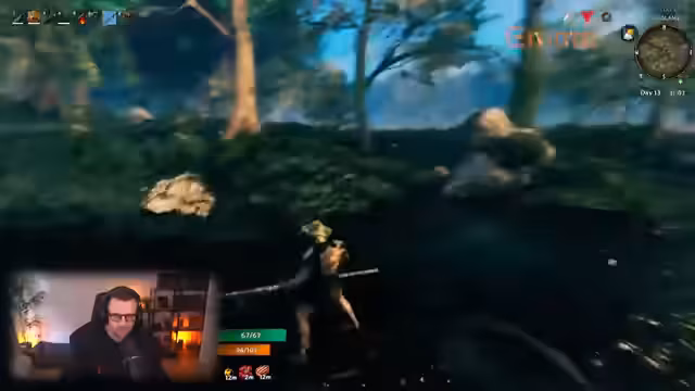 05:41:17Der Streamer setzt seine Erkundung des Düsterwalds fort, wird jedoch von einem Troll überrascht und getötet. Die Erfahrung wird als sehr intensiv und gefährlich beschrieben, insbesondere aufgrund der Nässe, die die Ausdauer beeinträchtigt. Der Streamer plant, zum Ort des Todes zurückzukehren, um den Loot zu bergen. Er ruht sich aus und macht sich auf den Weg zurück, wobei er versucht, das Wasser zu meiden, um den Malus zu vermeiden. Es wird auf Seeigel hingewiesen, die gefährlich sein können. Der Streamer erreicht den Wald und versucht, den Loot einzusammeln. Es wird festgestellt, dass die Tiere schlafen, was die Situation etwas sicherer macht. Der Streamer isst Pilze, um Leben und Ausdauer zu regenerieren. Es wird die Frage beantwortet, ob man die Mod auch online mit Freunden zocken kann (Ja). Der Streamer erreicht seinen Grabstein und versucht, den Loot zu bergen. Es wird erwähnt, dass man nicht einfach so losgehen sollte, da es dunkel ist und Gegner lauern. Der Streamer hört noch Gegner in der Nähe. Das Ziel ist es, den Loot einzusammeln. Es wird vorsichtig vorgegangen, da unten rechts ein Gegner war. Der Streamer isst Pilze, um Leben und Ausdauer zu regenerieren. Es wird die Frage beantwortet, ob man die Mod auch online mit Freunden zocken kann. Der Streamer befindet sich im Düsterwald, wo es sehr dunkel ist und man vorsichtig sein muss. Es wird erwähnt, dass die Tiere schlafen, was die Situation etwas sicherer macht. Das Ziel ist es, den Loot einzusammeln und zurück zur Basis zu gelangen.