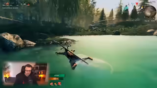 08:31:50Der Streamer sucht nach Seeigeln, um eine Nadel herzustellen, die für die Herstellung besserer Ausrüstung benötigt wird. Es wird erwähnt, dass Schwimmen in Wellheim durch die Mod ermöglicht wird, die auch Unterwasser-Dungeons enthält. Der Streamer erinnert sich daran, saure Knochen aufgenommen zu haben und das Rezept erhalten zu haben. Es werden kleine Garnelen unter Wasser entdeckt. Der Streamer versucht, einen Seeigel unter Wasser zu treffen, hat aber Schwierigkeiten wegen der Ausdauer und der Tauchmechanik. Schließlich gelingt es, einen Seeigel zu erlegen und wertvolle Ressourcen zu erhalten. Der Streamer testet den Schaden mit dem Speer. Es wird nach weiteren Seeigeln am Strand gesucht. Der Streamer plant, die neue Keule zu testen und die neuen Klamotten herzustellen. Es werden verschiedene neue Ausrüstungsgegenstände entdeckt, darunter ein Lidit-Schild und primitive Lederharnische.