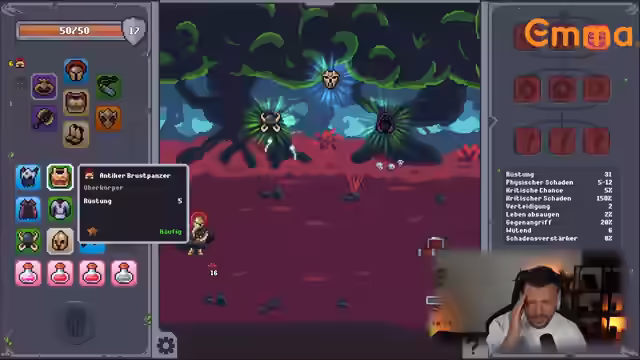 04:58:04Es wird überlegt, wie man die Schmiede optimal nutzen kann, um legendäre Gegenstände zu erhalten und die Ausrüstung zu verbessern. Es wird entschieden, ein blaues Item zu entfernen, um Platz für ein episches zu schaffen. Die Community wird nach ihrer Meinung gefragt, ob man das mit dem Schild machen soll, also ein legendäres umrollen. Es wird festgestellt, dass die Gegner eklig Schaden machen. Es wird ein Item gefunden, das Verwirrung verursacht, und es wird entschieden, es so schnell wie möglich zu töten. Es wird überlegt, welche Gegenstände man für die nächste Schmiede aufbewahren soll, und es wird Platz geschaffen, indem unnötige Tränke entfernt werden. Es wird überlegt, ob man ein blaues Item entfernen soll, um Platz für ein episches zu schaffen. Es wird überlegt, ob man die Kette aufwerten soll, aber es wird entschieden, es nicht zu tun. Es wird überlegt, ob man ein blaues Item entfernen soll, um Platz für ein episches zu schaffen. Es wird entschieden, ein blaues Item zu entfernen, um Platz für ein episches zu schaffen.