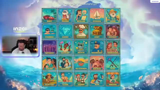 09:12:05Die Caster Rose und Breitenberg stellen die Teilnehmer vor. Divi erzählt von ihrer Vorliebe für Fische und Inseln und ihrer Begeisterung für Challenges. Aris LPS plant, sich auf Crafting und Angeln zu konzentrieren. Densen möchte die Frauenwelt aufmischen und daten. Edis der Breite hat das Ziel, fünfmal zu heiraten. Radlauge, bekannt für Anno-Speedruns, möchte viele Selfies machen und als Influencer agieren. Breitenberg erklärt, dass es im Spiel auch Naturkatastrophen geben wird. Er lobt die Detailtiefe der Charaktererstellung und die Möglichkeit, Charaktere individuell anzupassen. Die Challenges werden nochmals kurz erklärt: Es gibt 25 Aufgaben auf einer Bingo-Karte, die unterschiedlich schwer sind und unterschiedlich viele Punkte geben. Pro Punkt gibt es 2 Dollar. Wenn eine Reihe horizontal oder vertikal gelöst wird, wird ein Giveaway ausgelöst. Aris übernimmt als Team Captain die Steuerung und gibt Input.