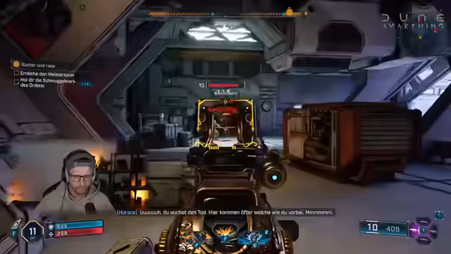 08:39:51Im Dungeon wird ein blaues Armband eingesammelt. Es wird ein versteckter Raum gezeigt. Die Gegner halten viel aus. Ein Mitspieler ist gestorben, aber es gibt Kontrollpunkte. Es wird überlegt, ob es gemein war, die Mitspieler allein zu lassen. Die Gegner können durch Fässer schießen, was ein Bug ist. Ein Mitspieler hat das Band nicht mehr gefunden. Es wird auf die Gefahr durch die Fässer hingewiesen. In der D3-Station gibt es Wellen, in denen man fünf von diesen Gegnern besiegen muss. Der Streamer muss das Spiel beenden. Es wird sich für die Einführung bedankt. Es wird gehofft, dass der Stream interessant war. Die Namen der Mitspieler sind im Titel. Es wird überzogen für das, was geplant war. Es wird gezeigt, wie man die Scout-Copter einlagern kann. Es wird vor PvP gewarnt. Es wird vorgeschlagen, vom Deep Desert zurückzukehren und stattdessen die Spicefelder zu zeigen. Es wird erklärt, dass die Spicefelder explodieren und man sie dann looten kann. Man sollte nicht über blubbernden Feldern stehenbleiben. Es wird zur Weltkarte zurückgekehrt, um nach Hagabasin zu fliegen. Es wird erklärt, wie man am schnellsten zur Basis zurückkehrt. Es wird darauf hingewiesen, dass man die Seite neu laden muss, um Drops zu bekommen. Der Hangar ist nicht für drei Flugzeuge ausgelegt. Es wird erklärt, wo sich die Basis befindet. Es wird ein Sandsturm angekündigt. Es wird versucht, zwei der Mitspieler mit dem Scout-Kopter landen zu lassen. Es wird ein Schweißgerät Typ 5 geborgen. Die Kategorien der Hilfsmittel und Werkzeuge werden diskutiert. Es gibt visuelle Glitches. Es wird vermutet, dass die vielen Spieler auf dem Server die Ursache sind. Es wird erwähnt, dass Free2Play-Wochenende ist. Der Streamer hat meistens abends gespielt. Es wird über die Nintendo Direct gesprochen. Es wird angeboten, die Spicefelder zu zeigen, aber die Mitspieler wollen sich lieber die Direct ansehen. Der Streamer macht noch 10-20 Minuten für die letzten Leute mit den Drops. Es wird sich für den Rundgang bedankt. Es wird empfohlen, Dune alleine oder in der Gruppe zu spielen. Es wird betont, dass man alles Solo spielen kann. Der Streamer hostet den anderen Streamer. Das Kämpfen gefällt dem Streamer jetzt besser. Das Fliegen ist bequem und nicht teuer. Die Basis ist cool. Der Streamer geht in die Zelle. Es wird überlegt, welche Klasse man spielen soll. Es wird erwähnt, dass man den Spielstand mitnehmen kann. Es werden mehr Baukomponenten für den DLC hinzugefügt. Es wird ein Raid gestartet. Es wird sich verabschiedet. Es wird Borderlands 4 weitergespielt. Das Max-Level ist 200.