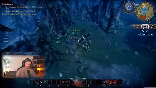 03:45:03Im Spiel Castle Craft beginnt der Streamer mit dem Aufbau seiner Basis. Er rekrutiert einen Bauern, der die Felder bebaut, und holt Ressourcen wie Holz, um den Bau einer Spitzhacke mit Runenverzauberung voranzutreiben. Er stellt das Spiel vor, eine Demo, die im Laufe des Tages erscheinen soll, und experimentiert mit dem Anbau von Feldern und der Rekrutierung weiterer Dorfbewohner, um die Grundlagen für eine Verteidigung gegen anstehende Wellen von Gegnern zu schaffen.