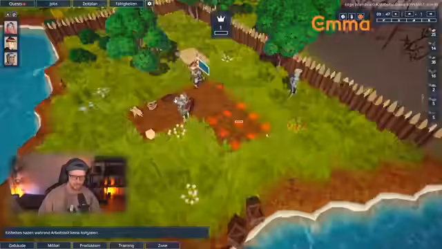 03:11:42Der Streamer spielt Kingdom of Cards, ein Crafting-Spiel mit strategischen Elementen. Er kombiert Gegenstände wie Stöcke, Schnüre und Schlüssel, um neue Einheiten wie Bogenschützen und Soldaten herzustellen. Eine Erkundung führt zur Villa Goldhand, die einen Heiler erfordert, der jedoch noch nicht gefunden wurde. Die Ressourcen werden aufgeräumt und neue Parzellen gekauft, um den Spielplatz zu erweitern.
