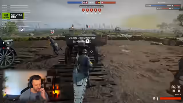 07:50:59Der Stream beginnt mit hochintensiven Gefechten auf einer Karte im Ersten-Weltkriegs-Setting. Der Streamer und sein Team konzentrieren sich darauf, strategische Punkte wie A, B und C zu erobern und zu verteidigen. Es kommt zu zahlreichen Nahkampfsituationen, der Einsatz von Granaten und Schusswechseln an verschiedenen Frontlinien. Die Kommunikation fokussiert sich auf die aktuelle Lage auf der Karte, das Nachladen und das Verteidigen der besetzten Punkte gegen gegnerische Angriffe.