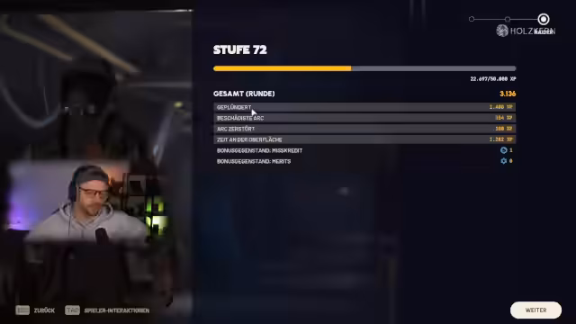 01:10:44Der Streamer demonstriert eine Runde mit Gratis-Loadout auf den Damm-Schlachtfeldern und erklärt dabei wichtige Spielmechaniken. Er achtet auf die Startzeit der Runde, um zu erkennen, ob es eine frische oder bereits laufende Runde ist. Beim Looten wird die Lautstärke des Aufbrechens von Containern hervorgehoben und der Tipp gegeben, sich dabei umzudrehen, um die Umgebung im Blick zu behalten. Die Wichtigkeit von Akustik und visueller Wahrnehmung wird betont, um Spieler und Arcs frühzeitig zu erkennen. Nach einer kurzen, aber erfolgreichen Runde, in der 18.000 Credits verdient wurden, wird das Loot-Management erklärt. Gelbe Icons zeigen neue Gegenstände an, die nicht zum ursprünglichen Loadout gehörten. Das Plündern und Zerstören von Arcs sowie die Zeit an der Oberfläche bringen Erfahrungspunkte. Es wird darauf hingewiesen, dass längere Aufenthalte mehr Erfahrung und Loot ermöglichen, aber auch die Anzahl der Extraktionspunkte im Laufe der Zeit reduziert wird. Abschließend wird die Funktion der Sicherheitstasche vorgestellt, die den Wert des Gratis-Loadouts erheblich steigert und es ermöglicht, wertvolle Gegenstände zu sichern. Auch die Verbesserung von Waffen und die Rolle von Scrappy beim Sammeln von Komponenten werden kurz erläutert.
