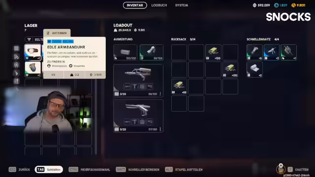 01:21:45Ein zentraler Tipp betrifft die 'Sicherheitstasche', die durch das Tauschen eines 'kostenlosen Augments' beim Händler erworben werden kann. Dies ermöglicht eine erhebliche Erweiterung des maximalen Loadout-Gewichts von 35 auf 50, was das Sammeln von Beute wesentlich komfortabler macht. Der Streamer demonstriert, wie man diese Tasche in ein Augment umwandeln kann, um beispielsweise mehr Gegenstände zu tragen, oder wie man sie als Verbesserung für Waffen wie den Kettle bis zur Stufe 4 nutzen kann.