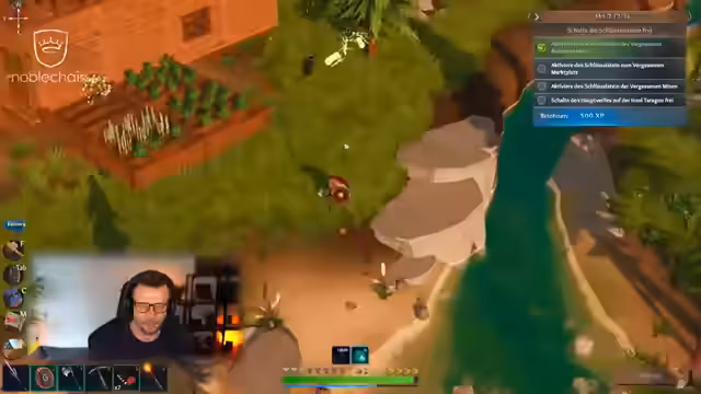 01:36:41Nach Abschluss des ESO-Segments und einer kurzen Abschätzung anderer Spiele wie Mannerlords und Belbride wechselt der Streamer zu Lens Island. Er startet eine neue Partie, sammelt anfängliche Ressourcen wie Baumwolle und beschäftigt sich mit dem ersten Crafting. Der Fokus liegt auf dem Aufbau der Basis und dem Entschlüsseln von In-Game-Inhalten, wobei er spielerische Vergleiche zu V Rising zieht.