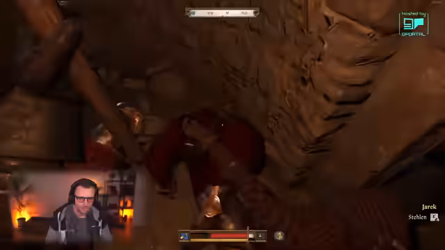 02:53:26Es wird ein Geheimgang von der Burg entdeckt. Eine andere Karte mit Schächten wird erwähnt, die aber nicht dabei ist. Es geht erneut runter, in der Hoffnung, wieder herauszukommen. Es wird kurz auf das Verlieren von Schwertkämpfen eingegangen und der Tipp gegeben, bei Kämpfen zu lernen. Ein Giveaway wird ausgeschlossen, da es keine feste Zeit dafür gibt. Es wird eine Truhe in der Höhle der Troski gefunden, die schwer zu knacken ist. Die Suche nach einem Schlüssel beginnt, während der Blick auf einen gespaltenen Kopf gelenkt wird. Die Vermutung, dass sich der Schlüssel oben befinden könnte, wird geäußert. Eine Fackel wird gefunden und die Detailgenauigkeit gelobt. Eine Truhe wird erfolgreich geknackt und Stahl, Groschen sowie Kohle gefunden. Es wird nochmals nach einem Trunk gesucht und ein uralter Schnaps für tausend entdeckt. Es wird bestätigt, dass es keinen Partymodus gibt und die Schriftzeichen 1 3 5 4 sind. Es werden Bürgerschuhe, Groschen, Leder und uralter Schnaps gefunden. Die Frage, ob jemand gepennt hat, wird aufgeworfen. Da es nicht mehr weitergeht, wird vermutet, dass etwas versteckt ist. Es geht wieder nach oben, wo sich eine Tür befindet. Es wird erwähnt, dass man nichts hört.