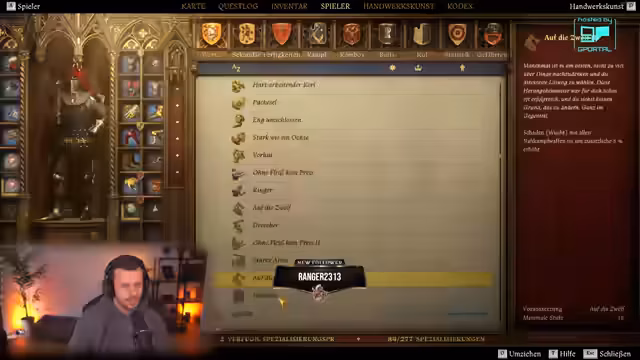 03:05:10Es wird über die Notwendigkeit gesprochen, eine Waffe von der Saga herzustellen, insbesondere die Klinge mit dem Löwenwappen, für die jedoch Frankfurter Stahl benötigt wird. Der Händler hat die notwendigen Materialien nicht. Es wird mit dem Händler gefeilscht, um den Preis für Waren zu senken und die Redekunst zu verbessern. Der Ruf wird durch den Handel verbessert. Die Hauptstufe der Redekunst liegt jetzt bei 14. Es werden verschiedene Vorteile betrachtet, darunter Siegfrieds Blut für zusätzliche Stärke und Agilität nach dem Kampf, sowie Geschickte Hände für schnellere Schleichgeschwindigkeit. Es wird erwähnt, dass gestohlene Waffen und Rüstungen ihren Status verlieren, wenn man die Fertigkeit völlig rechtmäßig beherrscht. Außerdem werden Tiergefährten-Fertigkeiten ausgewählt, die das Verhalten von Hunden beeinflussen. Die Rüstung wird repariert und zwischen den Sets gewechselt, wobei beschädigte Ausrüstung aus dem Turm erwähnt wird, die noch abgegeben werden muss. Es wird ein neues Jagdschwert geschmiedet, wofür aber noch Materialien fehlen.
