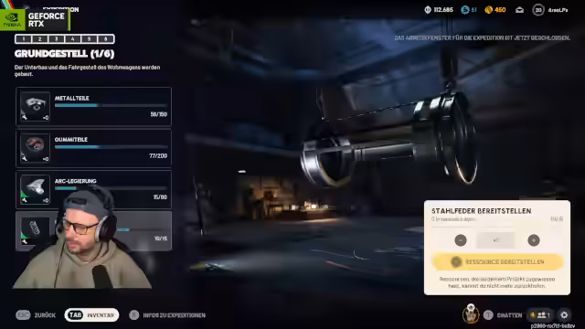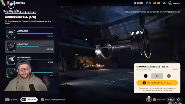 04:29:06Für den Bau des Expeditionswohnwagens werden 23 Metallteile, 80 Gummiteile und Arkligierung sowie Stahlfedern benötigt. Gummiteile sind besonders zahlreich erforderlich und können durch das Zerstören von Hornets oder den Handel mit Händlern beschafft werden. Schalldämpfer können ebenfalls gecraftet werden, benötigen aber oft Blaupausen. Der Händler bietet regelmäßig Waffenteile oder ganze Waffen an, die dann eine Abklingzeit haben, bevor sie erneut gekauft werden können. Die Preise variieren, und es kann sich lohnen, auf bestimmte Angebote zu warten. Es gibt auch die Möglichkeit, den Spielstand künstlich zurückzusetzen, um einen Bonus auf neue Raider zu erhalten, was ab Stufe 20 möglich ist. Dies ähnelt dem Prestige-System in anderen Spielen. Der Streamer sammelt weiter Geld durch den Verkauf von Gegenständen, um Lagererweiterungen zu finanzieren. Für die Arkligierung müssen Hornets zerstört werden, was eine gute Möglichkeit ist, diese Ressource zu farmen. Eine kostenlose Runde wird gestartet, um die benötigten Materialien zu sammeln, wobei der Verlust des Loadouts aufgrund der kostenlosen Natur der Runde irrelevant ist.